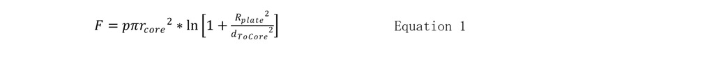 下記の計算式で推力発生板が生成する推力を算出する。式中に登場する変数はTable 1に示す通り。
