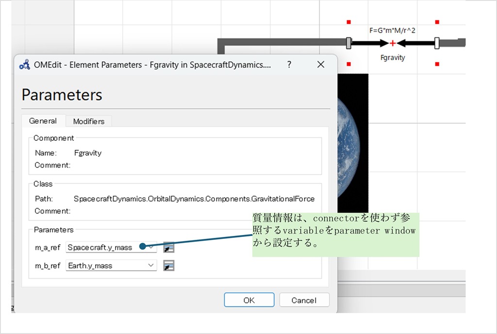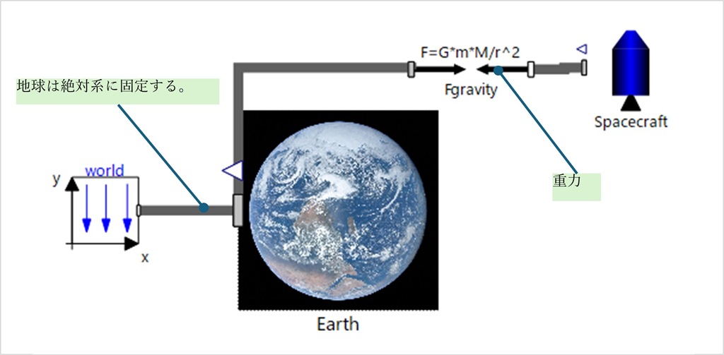 l コンポーネントを組み合わせる事で、複数天体の重力から影響を受ける宇宙機の運動、3体問題をシミュレーションできる。