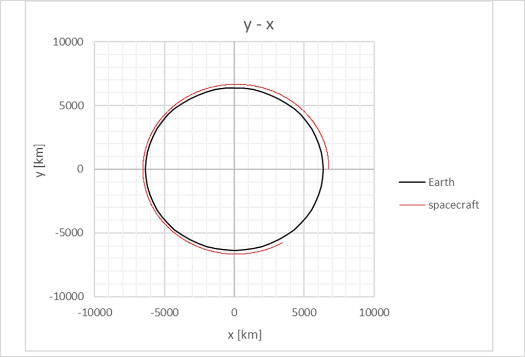 地球低軌道(高度400km)を周回する円軌道のシミュレーションにて、コンポーネントの動作を確認する。